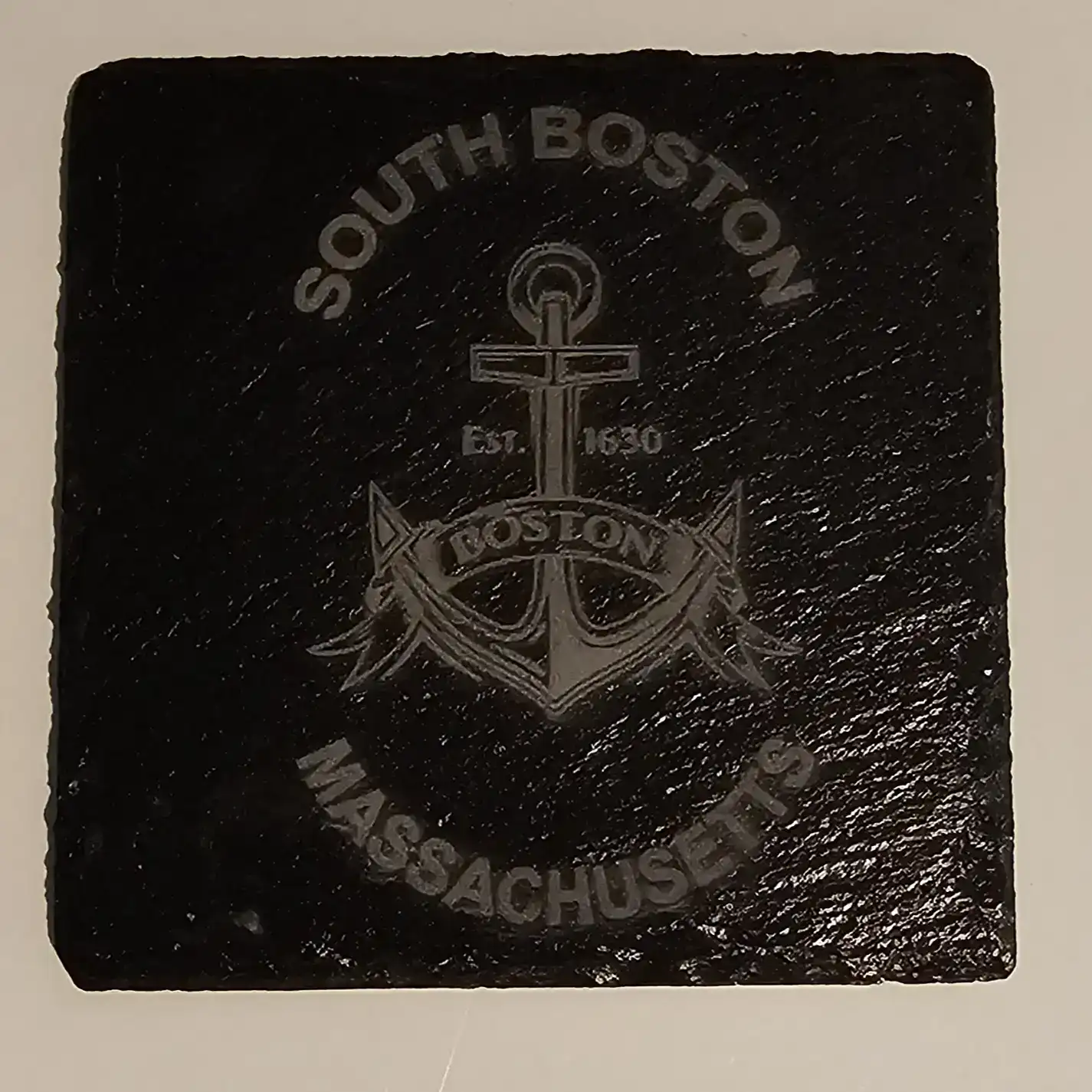 Laser-engraved anchor design honoring South Boston